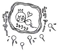 そのうちの一番早かった精子が卵子の中に潜り込むと、卵子は膜を作り、他の精子が入れないようにします。