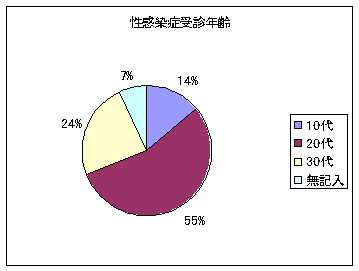 性感染症、ちょっと前まで「性病」と呼ばれていた病気にどんなものがあるかご存じですか?それが時として不妊の原因となったり、生命に関わることになったりするということを知っていますか?下のグラフは当院を受診した性感染症患者の年齢別割合です。