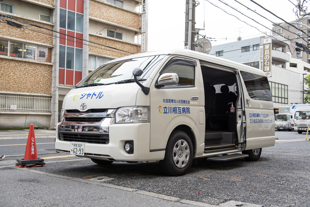 立川相互病院 ⇔ 立川相互錦町クリニック、ふれあいクリニック間でシャトル便(バス)を運行しています。
