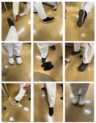 白いナースシューズが主流ですが在宅室では個人によってそれぞれちょっとしたこだわりを持って履きやすいものを選んでいます。