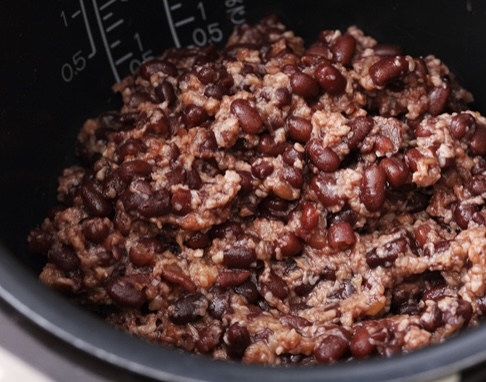 柔らかく茹でた小豆と米麹、これも保温で8時間ほど。