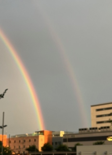 こんにちは。立川相互錦町クリニック在宅室 ざいたこです。もうすぐ梅雨が明ける、なんてニュースも出ています。梅雨と言うほど雨が降ったかな?と思えば連日大雨の予報もあり不安定な日々ですね。先日通勤路で大きな虹を見ました、しかも二重、ダブルレインボーです。虹は、太陽光が雨粒などの水滴に入射し屈折と反射を繰り返すことで光が分光されてみえる現象、二重に見える虹は副虹と呼ばれるそうで水滴内で2回反射した光によるもので色が反転してみえるそうです。