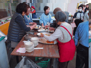 芋煮とお餅の準備が整い待ちに待った食事時間となりました。「美味しい~」、「毎年待ってるのよね」、「売ってない味だよ」と賑やかな会話が続きます。