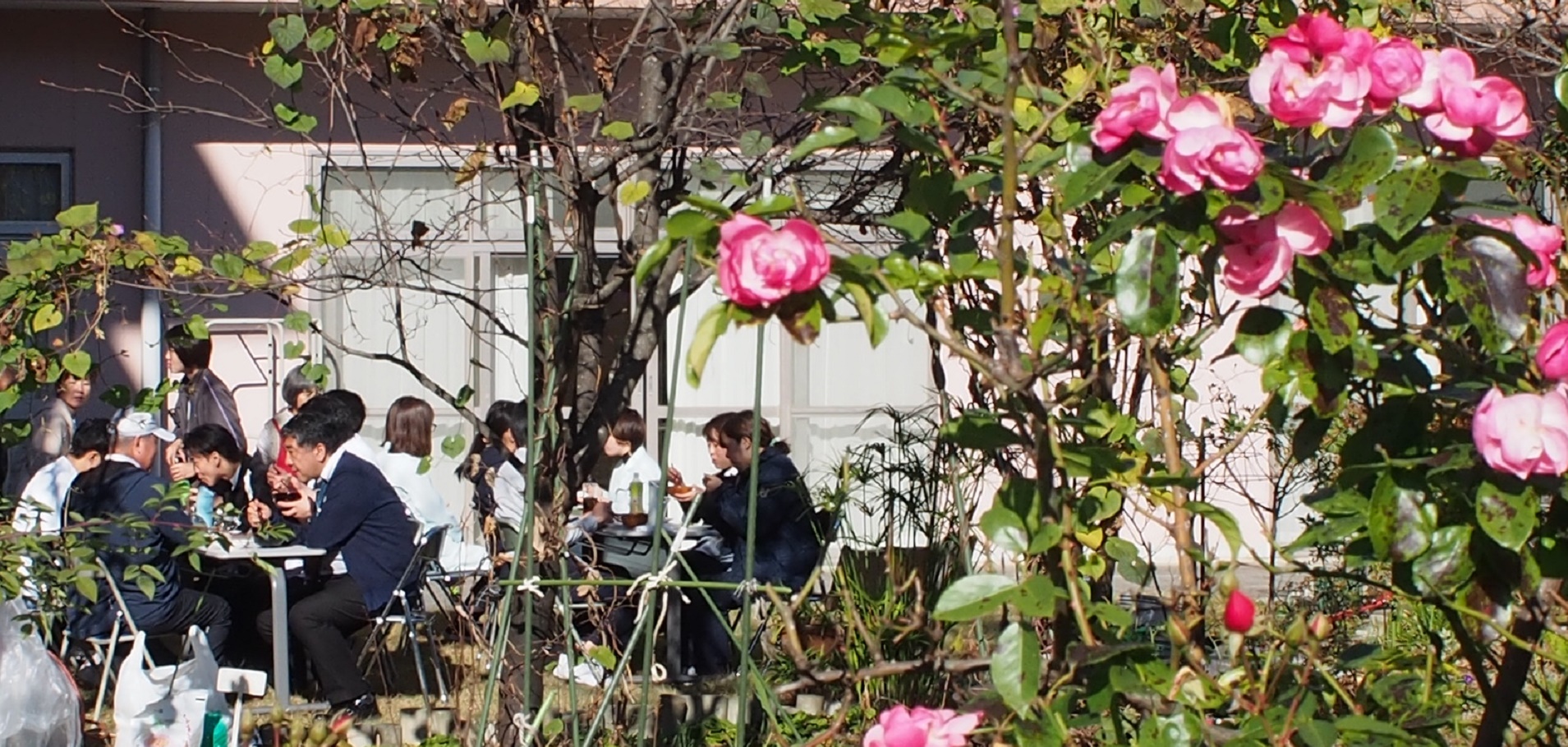 朝から「やまぼうし」の方々が張切って病院の庭に準備をされいる様子に、「今日はよろしくお願いします」と威勢の良い声がリハビリスタッフからかけられました。