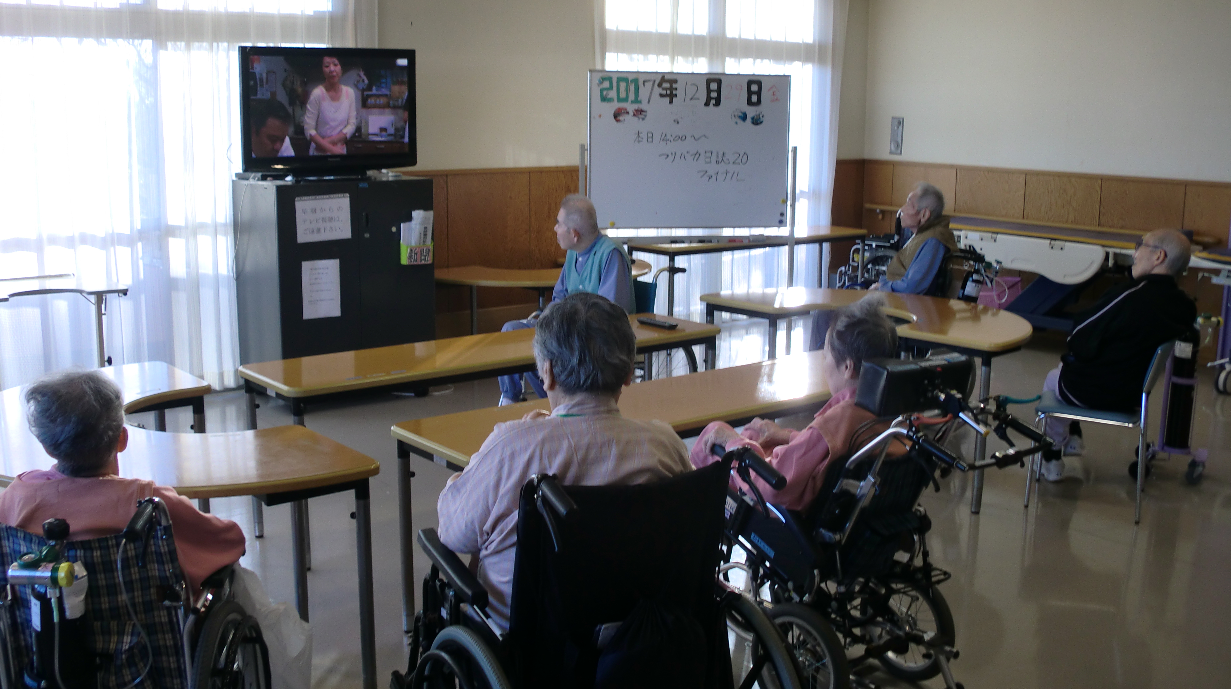 大晦日の病棟では普段行なっているリハビリなどがないので、皆さんテレビを見て過ごされています。この日流したのは「釣りバカ日誌」でした