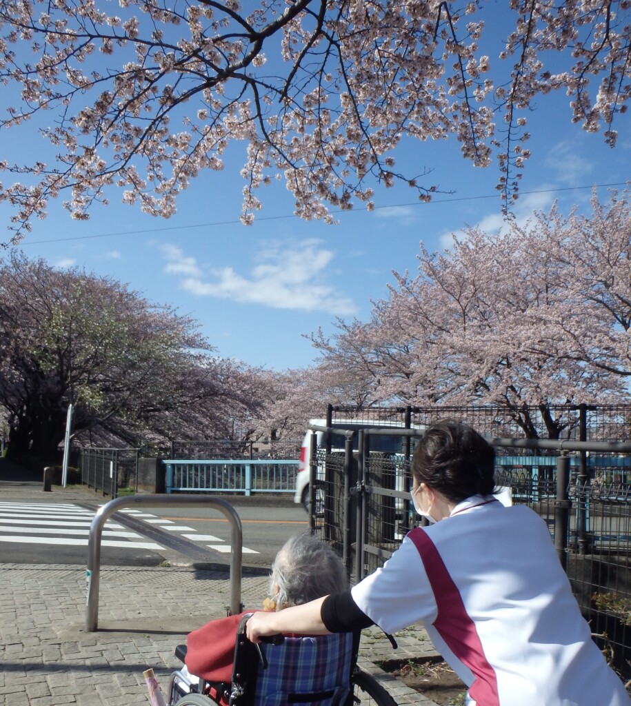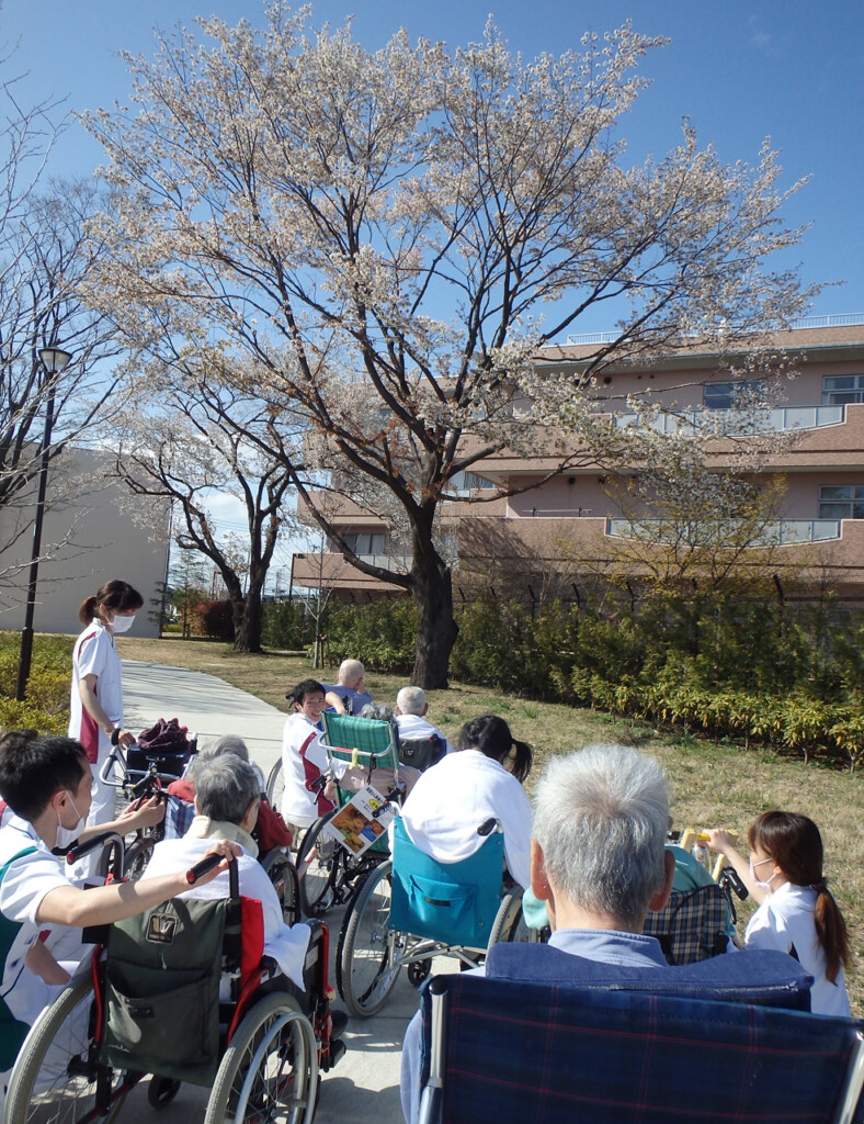 病院近くの残堀川は桜の名所です。4月7日、満開の桜の下で病棟患者様のお花見を行いました。外出する機会が少ない患者様方には近くまでの外出でしたが、病院に戻られてから桜がきれいだった、こんな色の桜があったなどとスタッフに教えてくれて、季節を感じる素敵な1日でした。