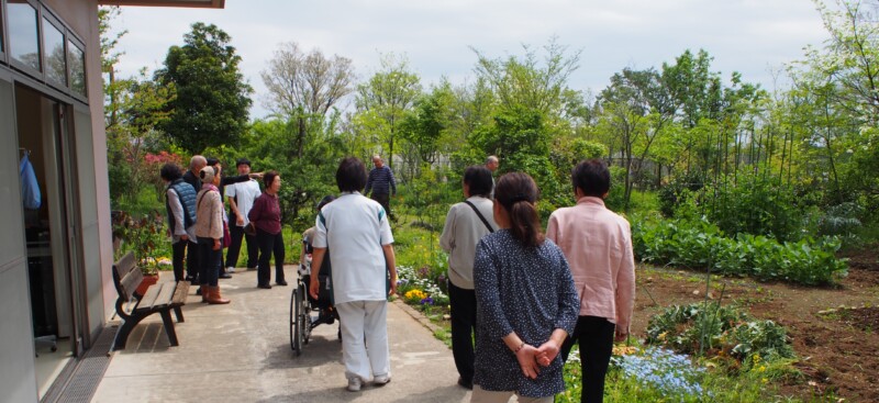 4月22日(土)に、利用者様のご家族においでいただき(17家族27名)「家族会」を開催しました。前半は通所リハビリの普段の様子を動画や写真で見ていただき、後半は共通する話題などでグループに分かれて、家庭での様子などを出し合いました。途中の休憩では庭に出ていただき、新緑や沢山の草花を楽しんでいただきました。
