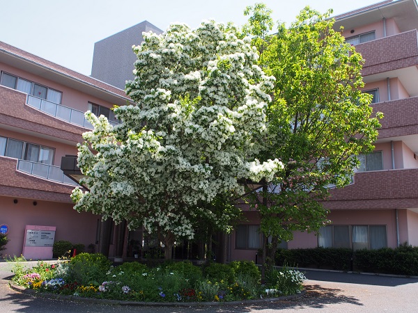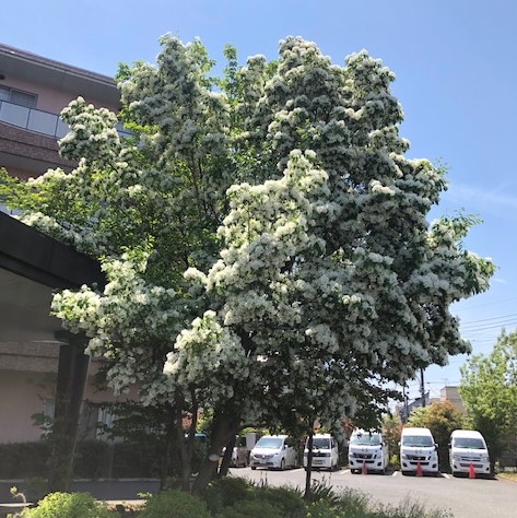 あきしま相互病院のシンボルツリー、なんじゃもんじゃが5月上旬に満開になりました。本当は本物をご覧いただきたいですが、写真でお花見をどうぞ (^o^)/