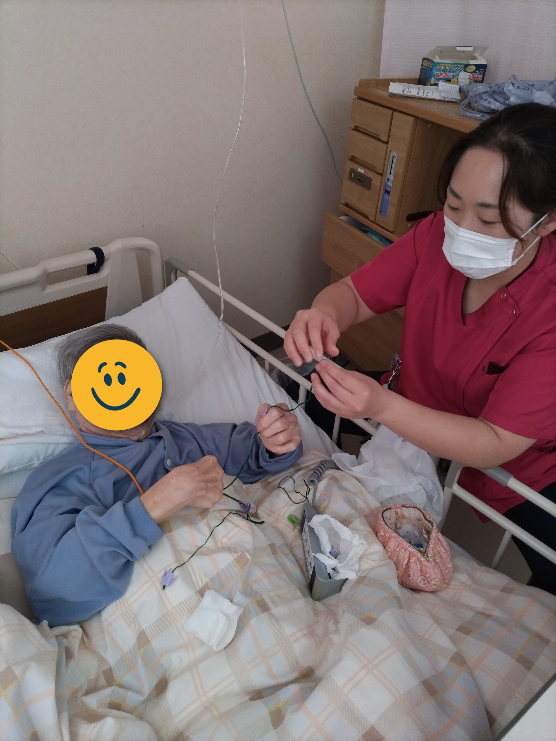 看護師が会話の中で想いを汲み取り、千羽鶴を折ることにしました。