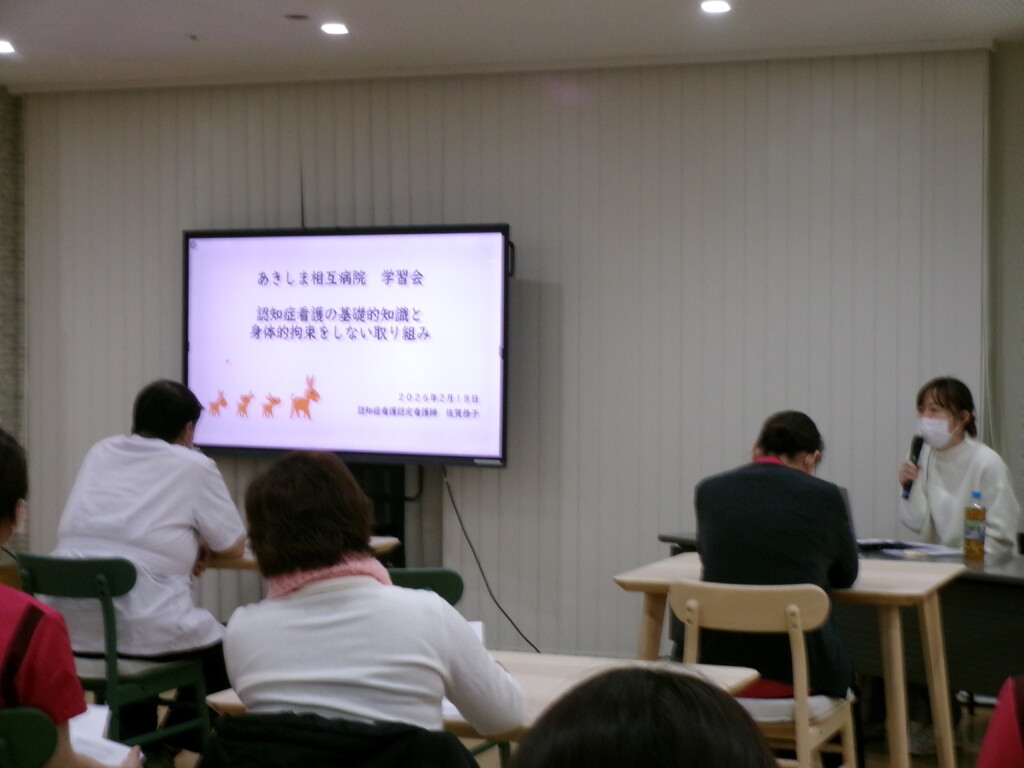 あきしま相互病院では、2月18日 立川相互病院の認知症ケア認定看護師 佐賀恭子師長にご講演いただきました。