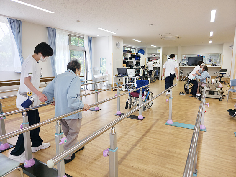 リハビリテーション専門医や回復期セラピストマネジャーが在籍しており、365日のリハビリテーション医療を提供しています。退院後も継続した関わりが持てるように、医療との連携や地域の事業所とも積極的に連携しています。