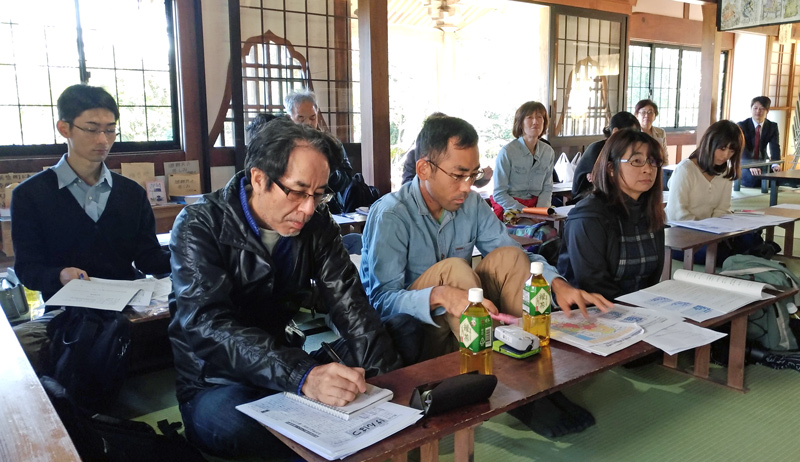 震災後の「福島の今の姿」を知るために、健生会では福島でのフィールドワーク研修を継続して行っている。放射性廃棄物の入った大きなフレコンバックが無数に山積みされる光景を目の当たりにし、原発事故前から原発の危険性を訴えてきた楢葉町・宝鏡寺の早川篤雄住職の怒りに満ちた思いを聞いた。この現実に対して、私たちができることは何かを考え、伝えることの大切さを学ぶ場となっている。