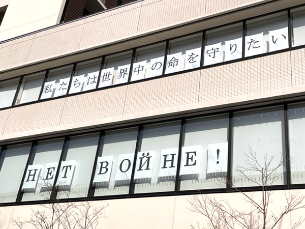 2022年2月、ロシア軍がウクライナへ侵攻を開始──私たちの目の前で、戦争が始まった。立川相互病院では命を守る医療従事者として声を上げたいと、病院の窓に「私たちは世界中の命を守りたい。(ロシア語で)戦争反対」というメッセージを掲げ、全職員での「世界の平和について話そう」プロジェクトを立ち上げた。