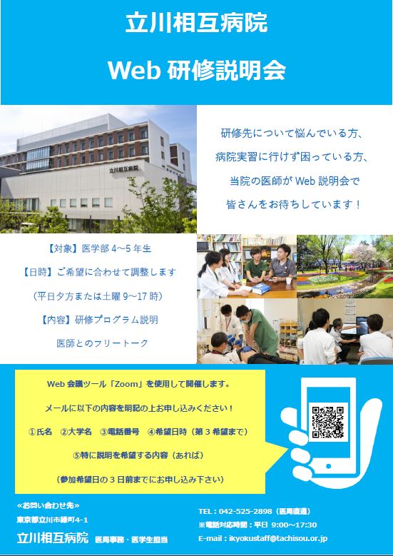 立川相互病院では医学部生を対象とした「Web研修説明会」を開催しています!