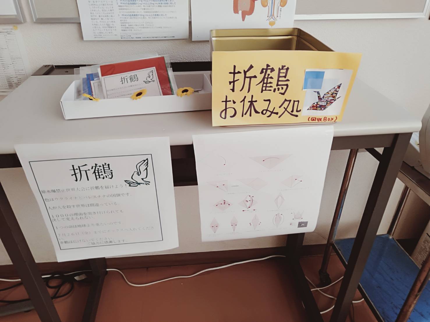 今年、原水爆禁止世界大会に昭島相互診療所の看護師が参加する事になりました。昭島相互診療所では、原水爆禁止世界大会に向け千羽鶴作成とカンパ活動を行っています。皆様の想いが乗った鶴を参加する看護師が広島まで届けます。是非、一緒にわれらの昭島相互診療所 看護師を送りだして欲しいと思っています。ご協力の程、よろしくお願い致します。