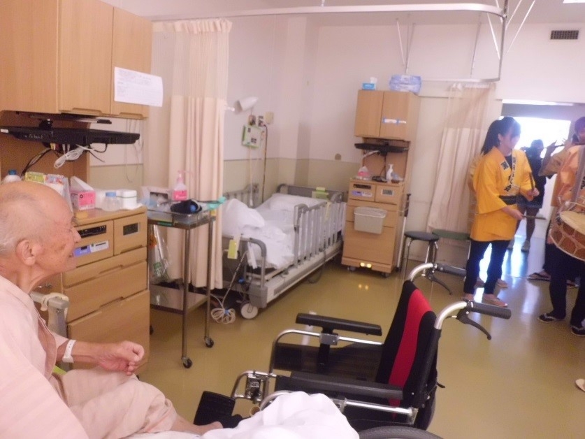 お囃子連の方たちは、練り歩きながら、病室1つひとつ回ってくださり、
