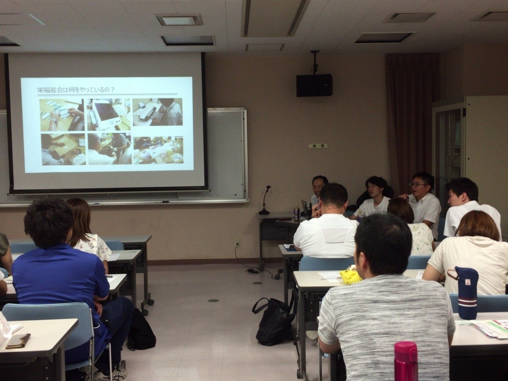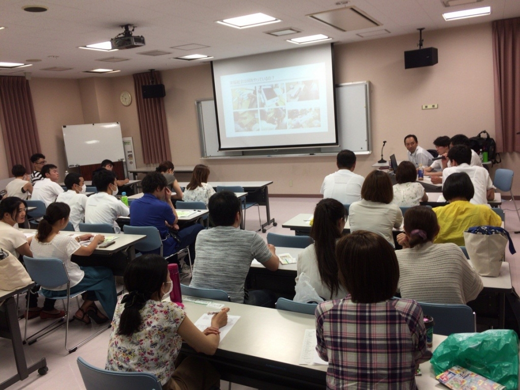 7月31日に一般社団法人栄福祉会さんより職員をお招きし、「医療と障害福祉」というテーマで勉強会を行いました。健生会のリハスタッフは約40名参加しました。