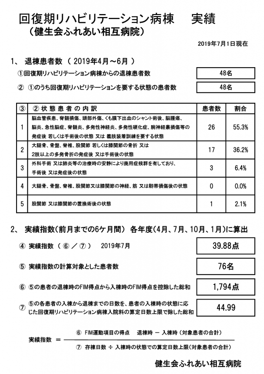 健生会ふれあい相互病院 回復期リハビリ病棟の実績を掲載いたします。