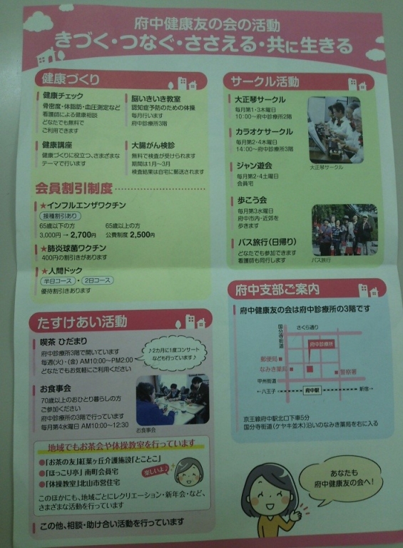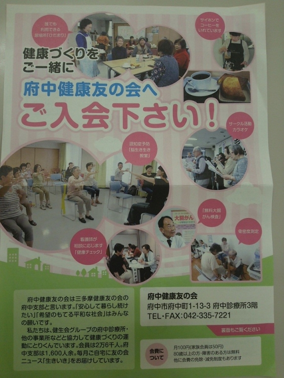 府中健康友の会は支部も合わせると1,600人余りの会員さんがいます。