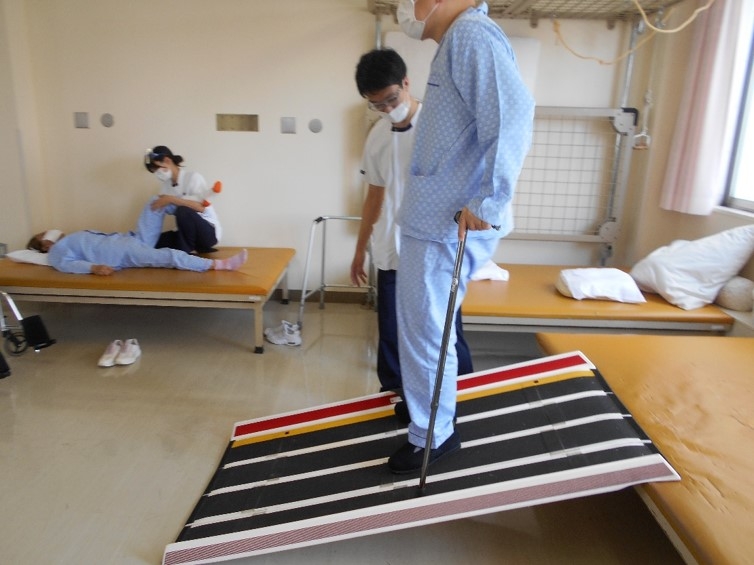 バスや電車など交通公共機関の利用練習や外出・外泊も見送りとなっています。患者様によっては坂道や砂利道の練習が必須となる方もいて、何とかそれに近い場面設定を訓練室内で再現して練習しています。