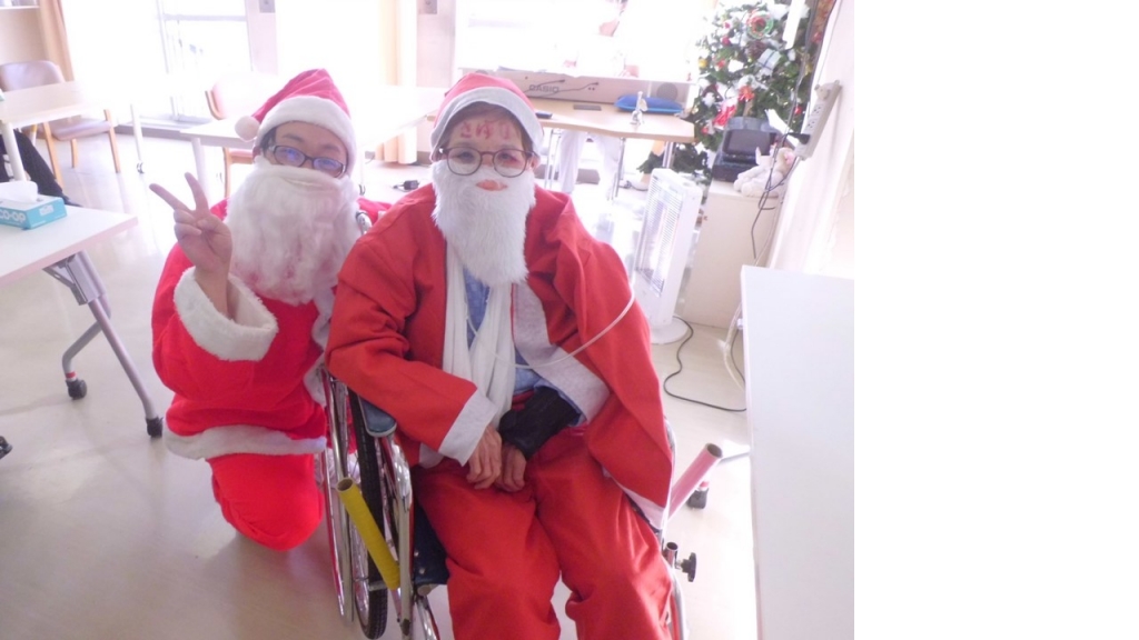 サンタも飛び入り参加。患者様もノリノリでサンタに扮してパチリ。笑顔。
