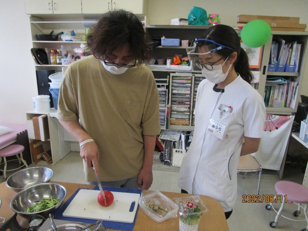 こちらの患者様は崩れやすいトマトを綺麗にカットしていきます。