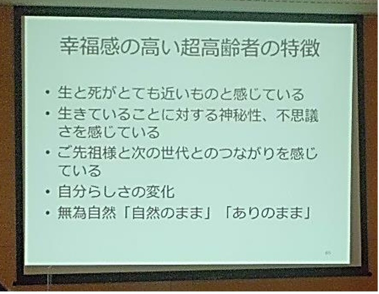 近年、老年的超越など、超高齢になっても幸福感が保たれているという研究を紹介しました。