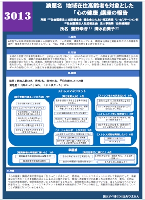 健生会ふれあい相互病院では2023年12月10日に日本公認心理師学術集会に参加して,公認心理師としてポスター発表を行いました。