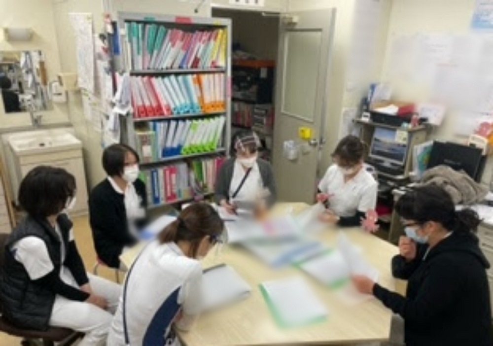 みんなで、患者様、ご家族にどう向き合い寄り添ったか振り返り共有します。