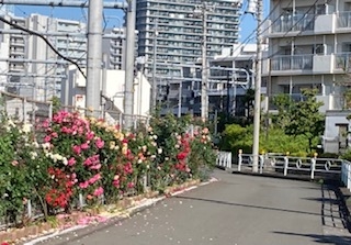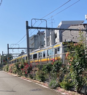 今回のざいたこだよりは南武線沿い、西国立から立川間に咲くバラについて往診患者H様が、大切に手入れをされているのでご紹介します。