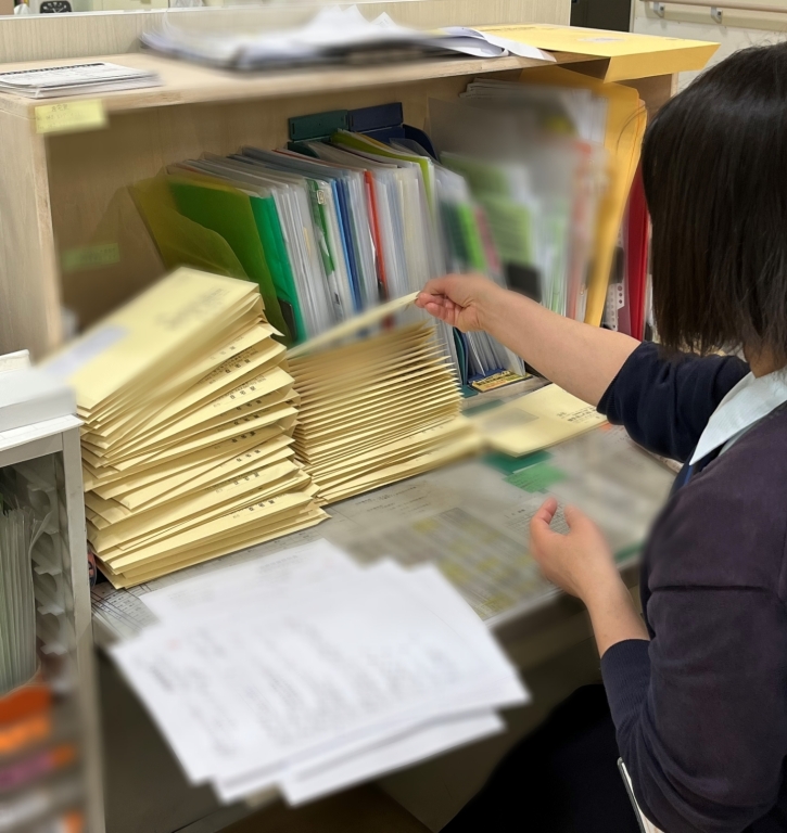 今回のざいたこだよりは在宅室の縁の下の力持ち、事務の皆さんの作業内容の紹介です。