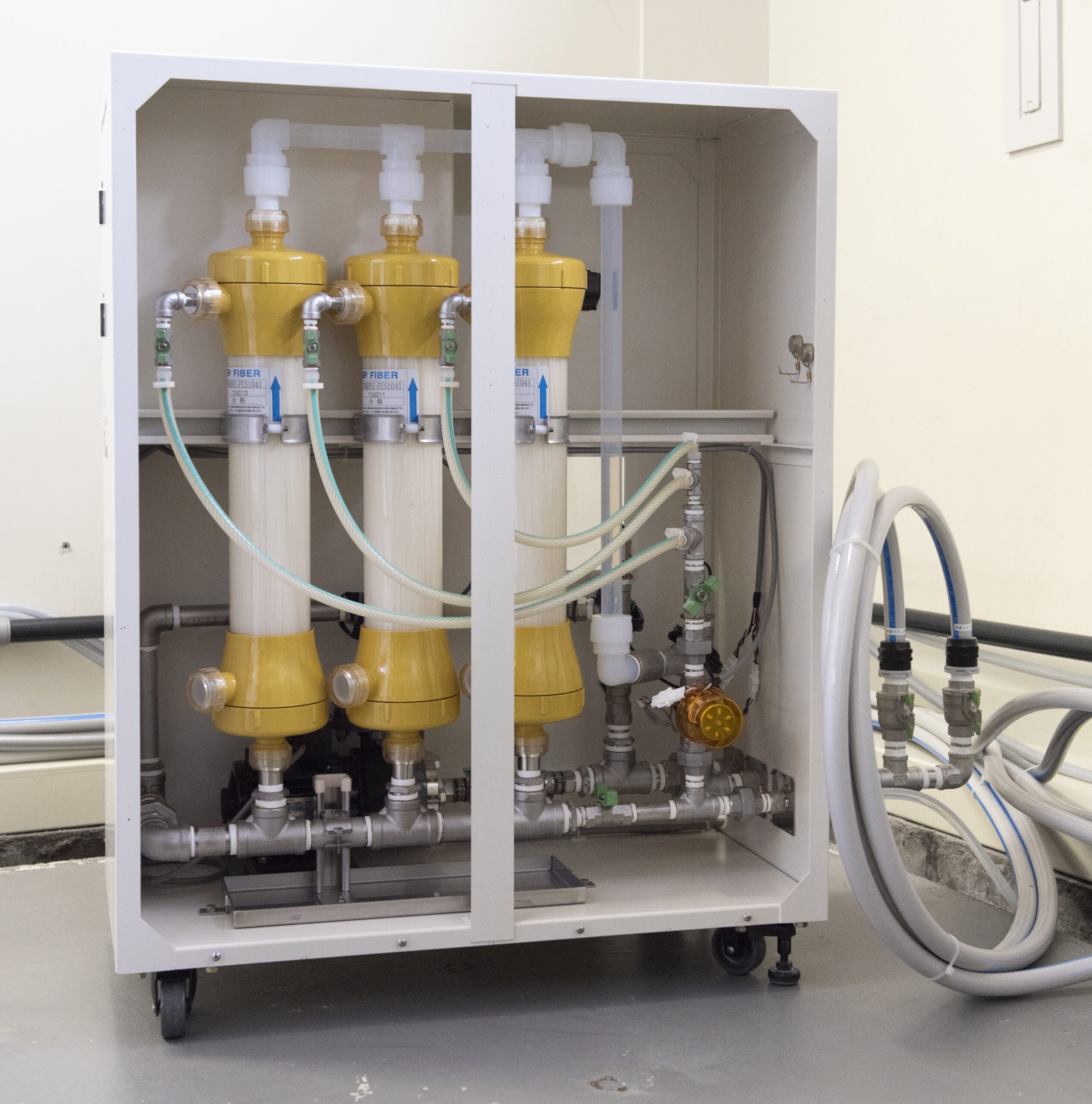 安全なオンラインH D F 治療には日本透析医学会の定める透析液水質基準を満たす事が大切と考え、臨床工学技士が責任を持って日々の管理に努めています。