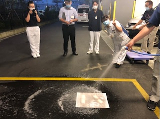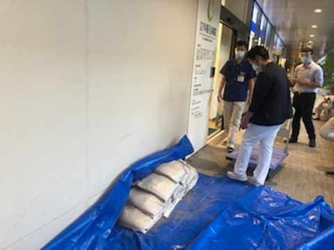 水害時には病院の入り口に土嚢を積んで浸水を防ぐ計画なのです。